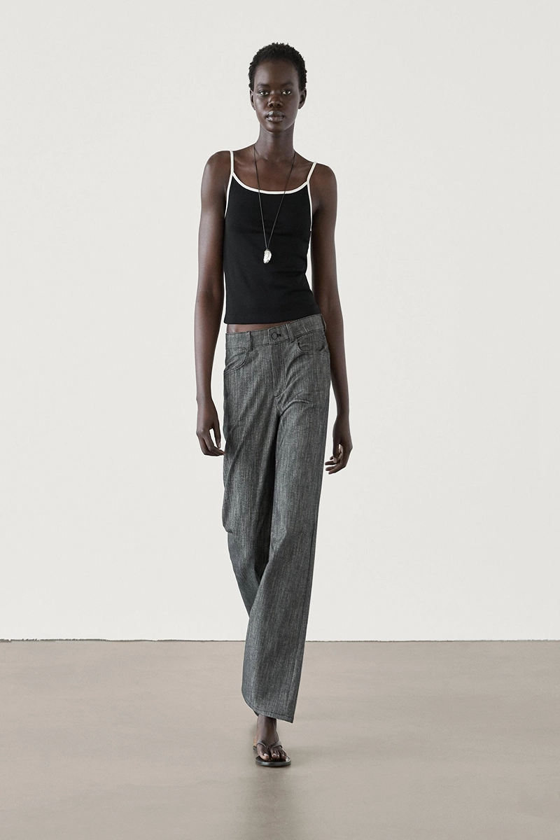 Massimo Dutti Strappy cotton top with contrast trim black